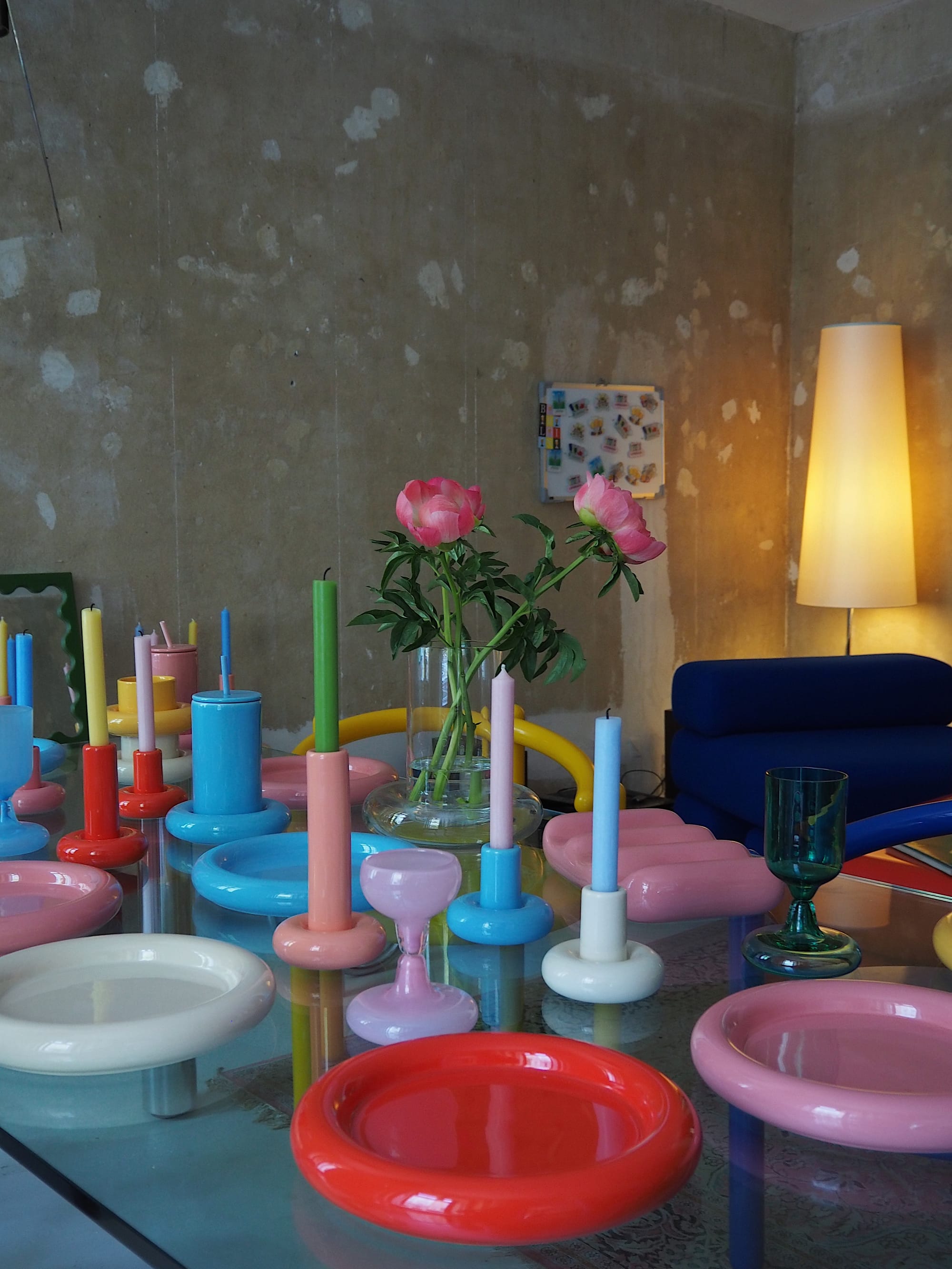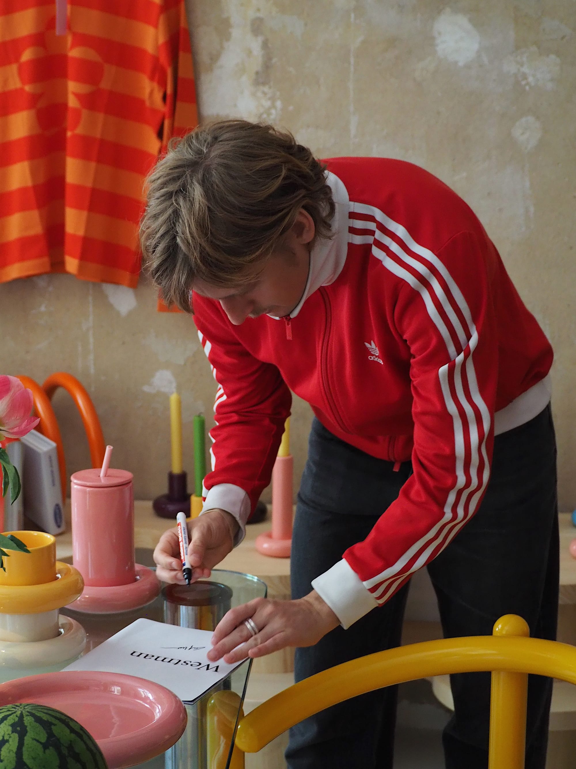 It’s a sticky Sunday in Kreuzberg, and the line snaking down the block isn’t for Berghain or some micro-cinema screening. It’s for an apartment. Inside: disco-ball lighting, curvy Swedish furniture, and enough pastel glassware to crash your Instagram algorithm. The space? A one-bedroom apartment belonging to Guy and Dima, Kindred members and Berlin locals temporarily overtaken by Swedish designer Gustaf Westman. He’s the mind behind the internet’s most recognizable dopamine decor: pastel pipe chairs, wavy mirrors, and glassware straight out of a Saturday morning acid trip.