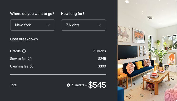 Credits are entirely about reciprocity and don’t have monetary value, so you can’t buy them. Unlike other swapping websites, one credit always equals one night: All homes are treated equally, no matter the size or location.